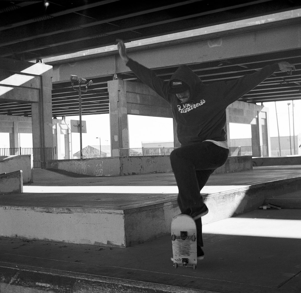 The film was Kodak T-Max 400 and I rated it at 800 ISO. My camera was being finicky that night (and I’d also had a few beers), so my dexterity in manually advancing after each shot was lackluster. The camera is designed to give 12 shots per roll. I eeked out just 10. Eight at the game, two more the next day on a photowalk with my son and grandson.