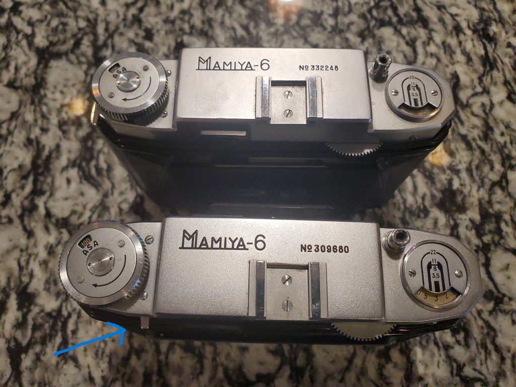 I mentioned in a previous post that I ended up with two identical copies of the same camera. It turns out they’re only near identical. I’m talking about my pair of Mamiya 6 Six Automats. I hadn’t noticed the differences between the two right away. But I eventually noticed that one had a lever on the back and under the film advance knob. The other camera lacks this lever.