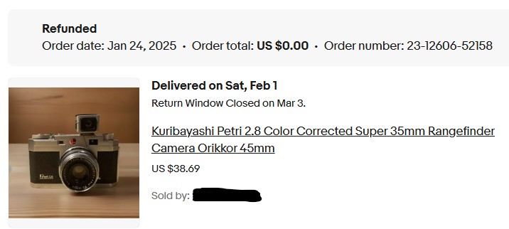 Kuribayashi Petri is not a camera maker I was familiar with. I think I came across a random YouTube video about one of their cameras and its owner was praising it. So I did what anyone in my position would do. I went to Ebay. I found one with a “Buy it Now” option for a mere $35.99 and bought it. My total was $38.69 after taxes. Shipping was free.