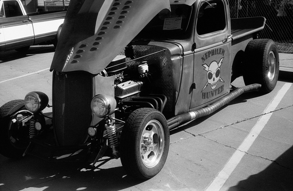 The roll of film I tried in this developer was shot in my Canon P equipped with the Soviet-made Jupiter 8 – 50mm f/2 lens. The film was Kentmere Pan 100. This is considered a “budget” film, but I’ve always had good success with it. I went out to a local car show and it didn’t take long to blow through the whole 36 exposures. It was a bright, sunny day, so I set the camera to f16 and 1/100th of a seconde (Sunny 16) and left the settings alone.