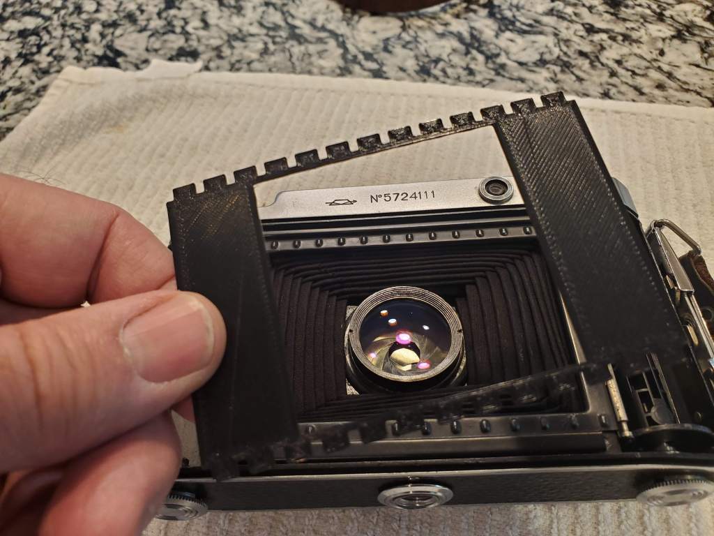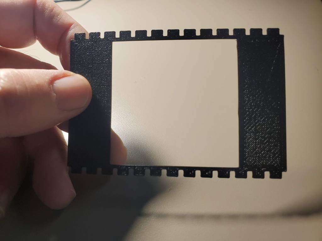 Only after I completed the sale did I realize that the camera likely wouldn’t come with the 6×6 mask. Without it, I wouldn’t have the option of shooting 6×6 frames. Being able to shoot two different sized negataives is one of the things that drew me to this camera in the first place. This caused me to research obtaining a replacement mask. I found some used ones for sale on eBay starting at around $25. I also stumbled upon the files necessary to 3D print a mask. This was on the Thingiverse website. I contacted a co-worker who I knew had a 3D printer. He agreed to help a brotha out. I agreed to pay for materials and a lunch of fried chicken. “I’ll bring it in tomorrow,” he said.
