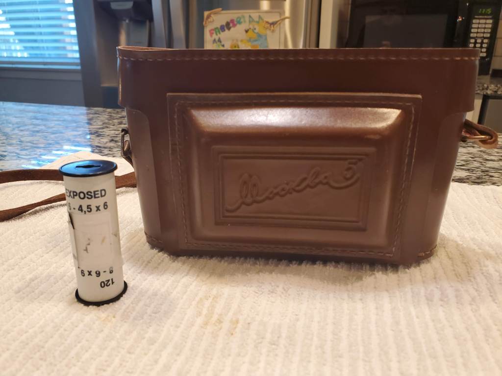 The camera was as clunky (and beautiful) as expected. It came in a near-mint leather case with a neck strap. The promised shutter release cable was missing.