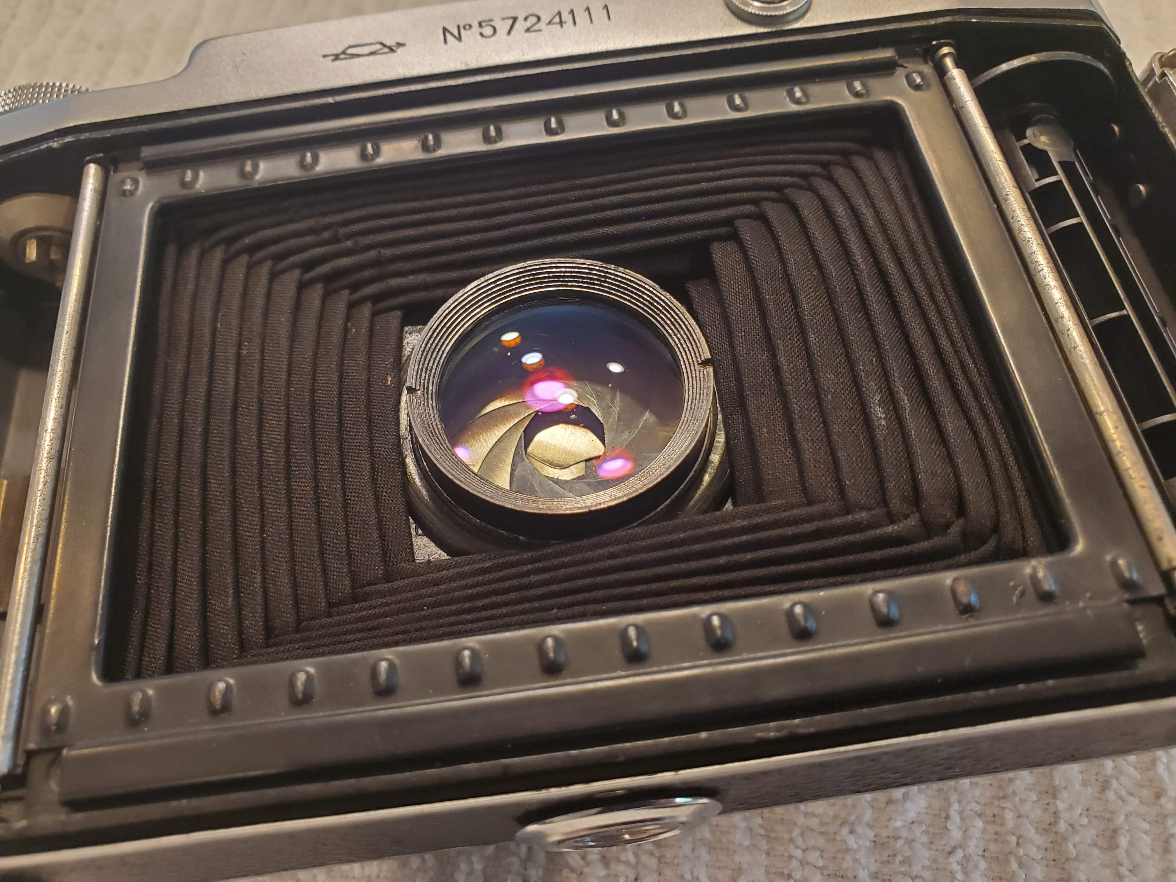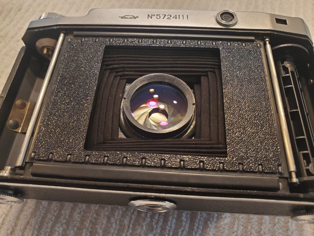 I became aware of this camera when I was researching 6×9 medium format cameras. I have an Ansco Viking 6.3 (actually two) which shoots that format, but I’m horrible at zone focusing. Because of this, I consistently get shots that are out of focus when using it.