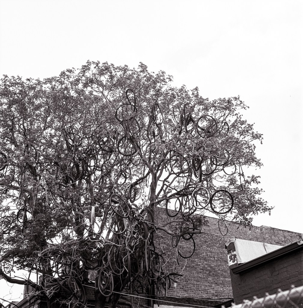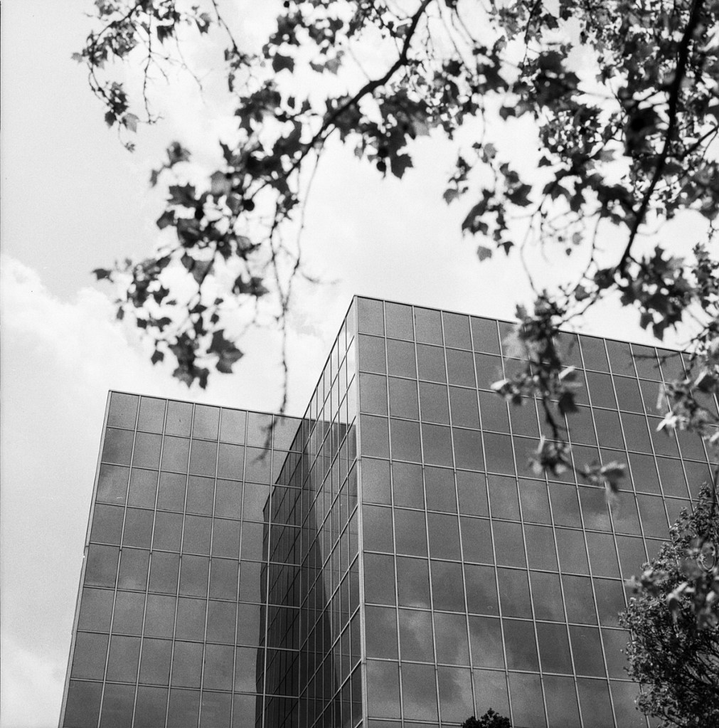 Finally on Monday, the weather cleared up (and so did my achiness and sneezing fits). The camera was loaded with a roll of Rollie RPX 100. I’d never shot this film before. I’d purchased a single roll of it to try out at some point. I ventured out and shot the whole roll in less than an hour. When it came time to develop it, I did a little research on developers. The Internet was loud and clear that Rodinal 1:50 with this film is a hard combination to beat.